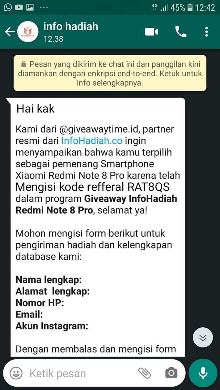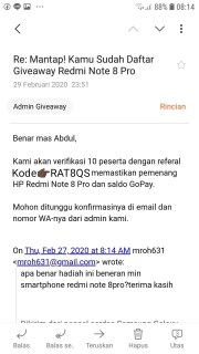 Tunggu nanti ada pesan lewat whatsapp/gmail suruh isi data dapat hp gratisnya