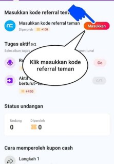 4. ➡️lalu geser ke bawah ada tulisan masukan kode referral teman